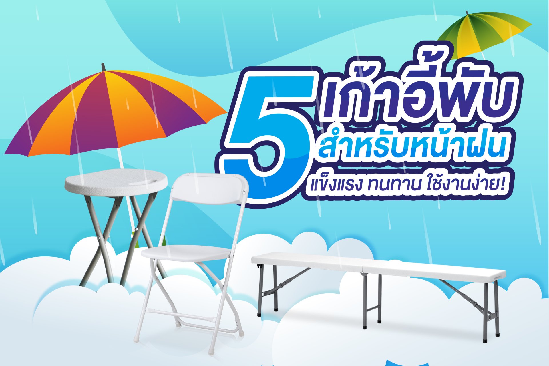 หน้าฝนมาเยือนทุกปี แต่ร้านค้าก็ต้องขาย งานอีเวนต์ก็ต้องเดินหน้า! ดังนั้นเก้าอี้ที่ทนแดด ทนฝน พับง่าย เคลื่อนย้ายสะดวก จึงกลายเป็นอุปกรณ์ที่จำเป็นสุด ๆ วันนี้เราขอแนะนำ 5 รุ่นเก้าอี้พับที่เหมาะกับการใช้งานกลางแจ้งในหน้าฝนที่สุด!